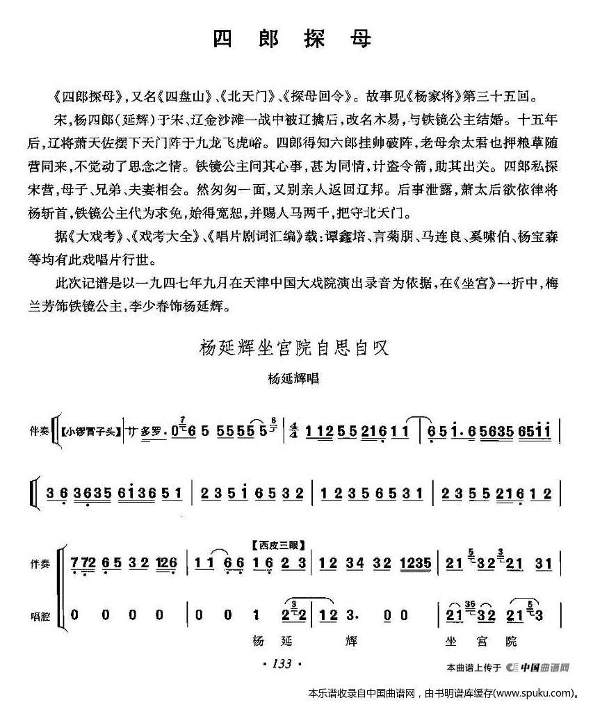 杨延辉坐宫院自思自叹 四郎探母 选段 京剧琴谱