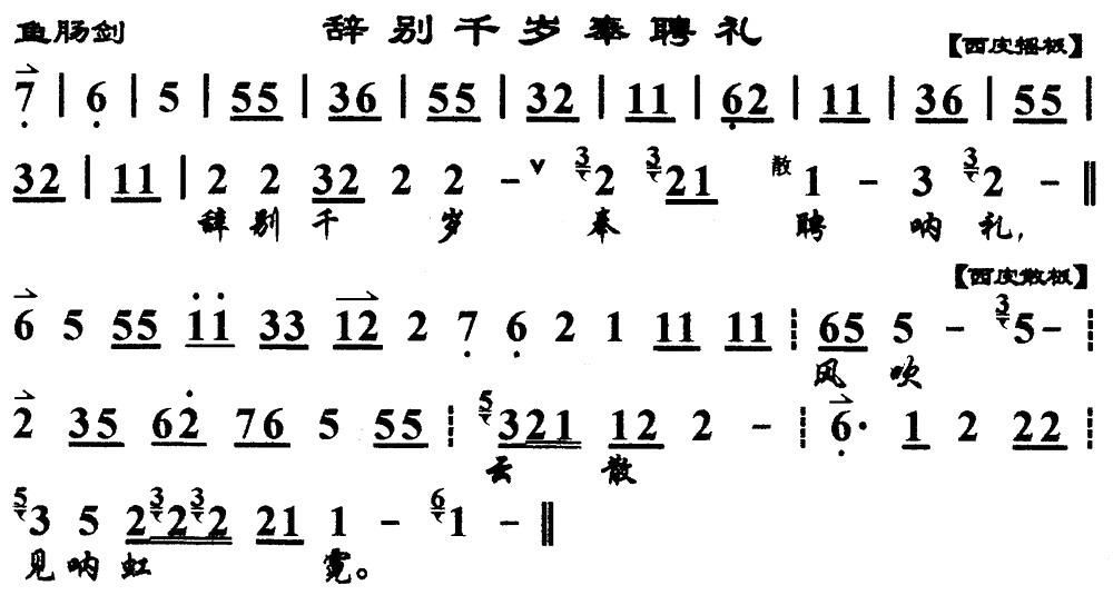 > 辞别千岁奉聘礼 鱼肠剑 选段 琴谱