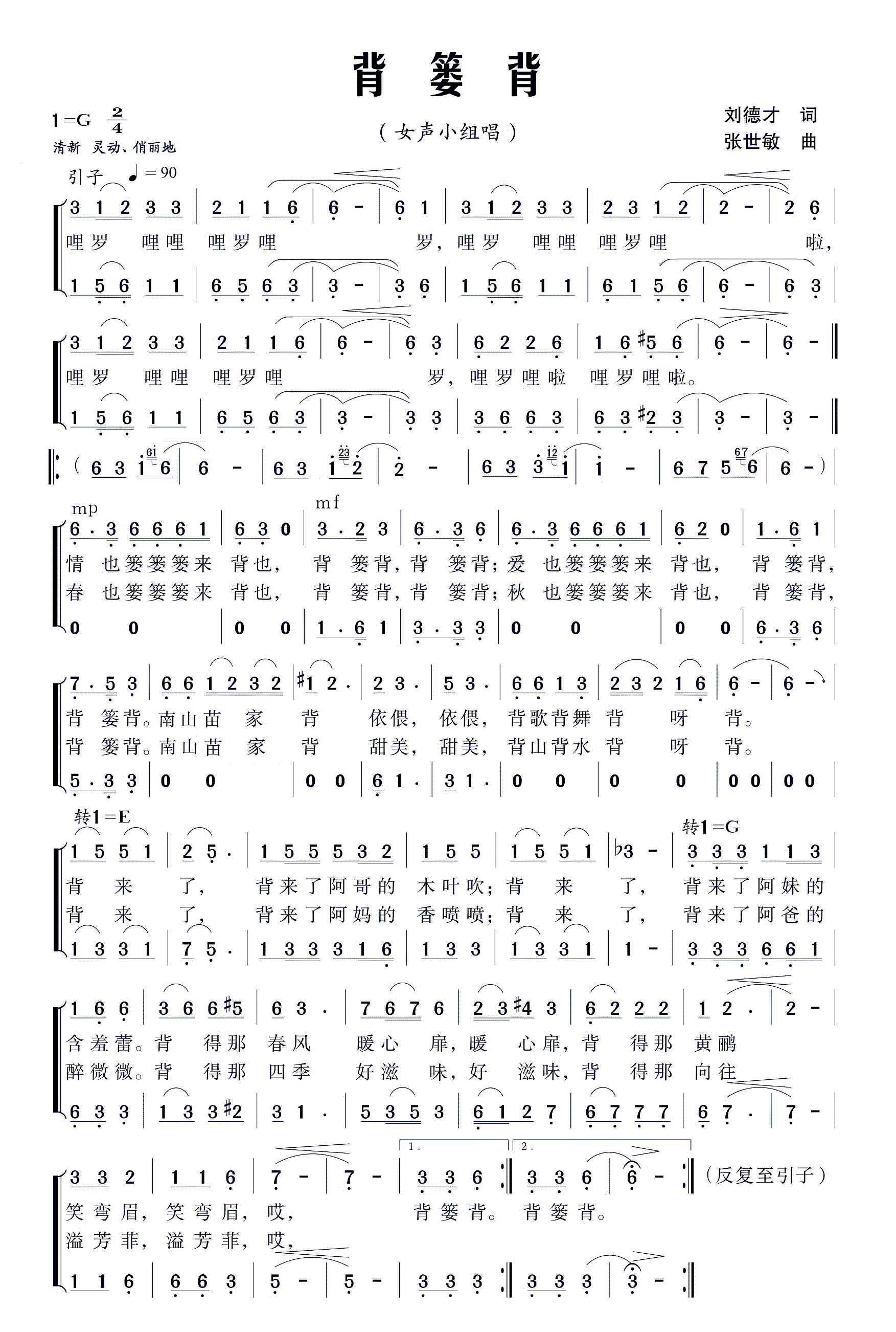 - [歌谱] 小背篓
