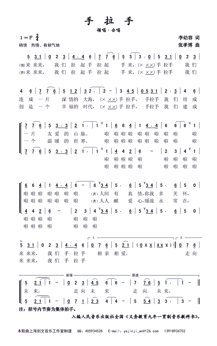 - [歌谱] 手拉手 领唱