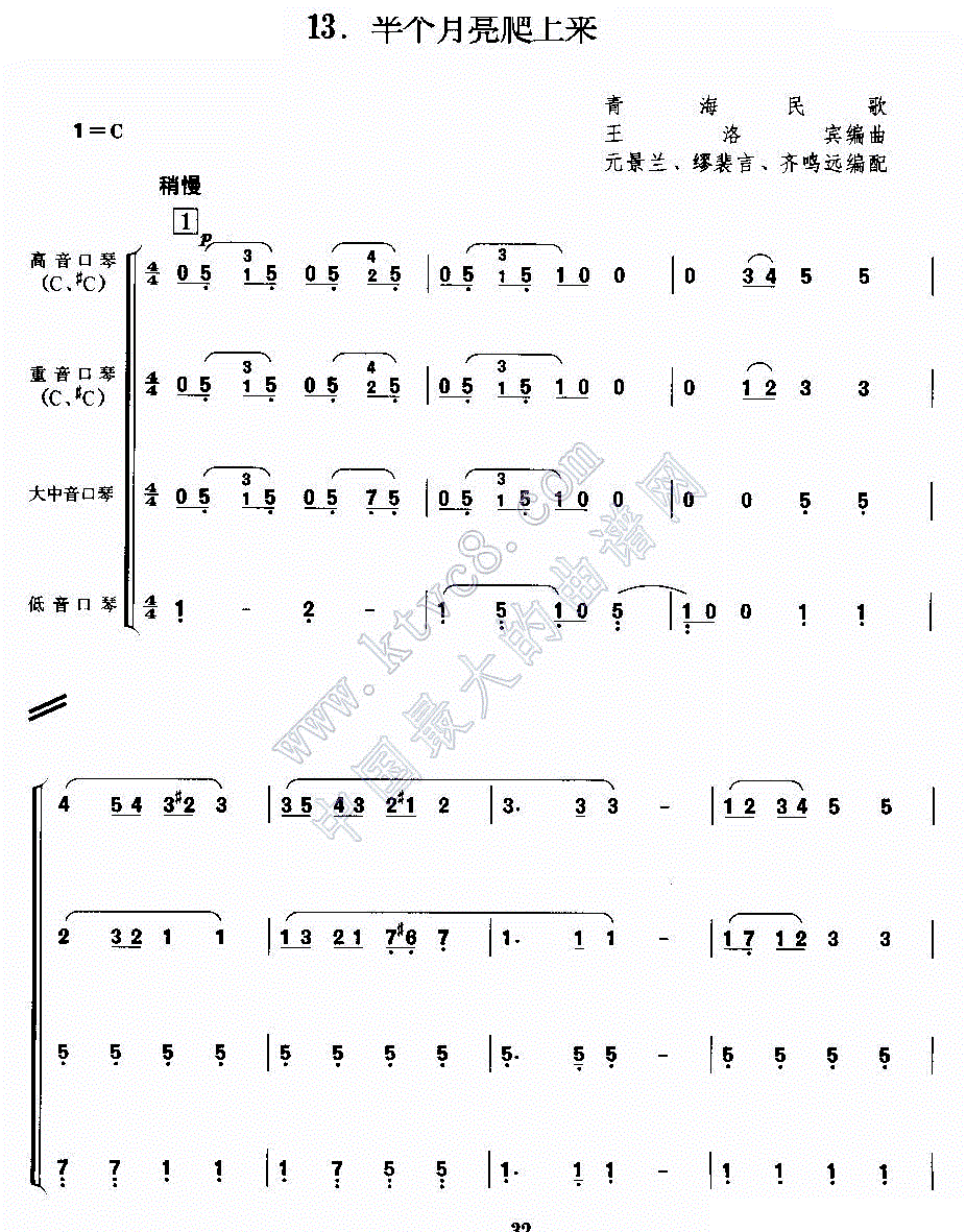 > 谱半个月亮爬上来 合奏