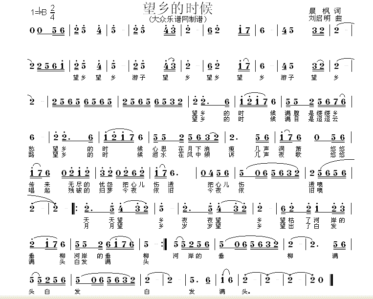 - [歌谱] 望 乡