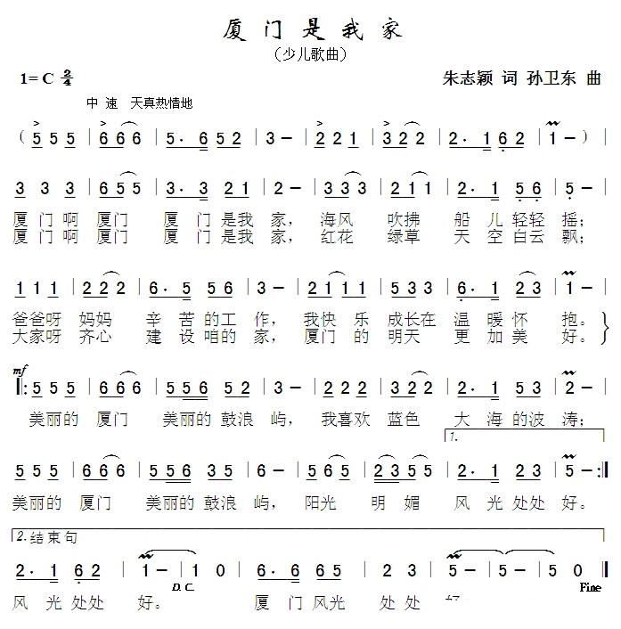 > 厦门是我家 孙卫东曲