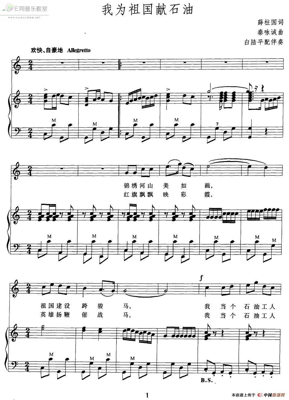 我为祖国献石油 刘秉义 手风琴伴奏谱