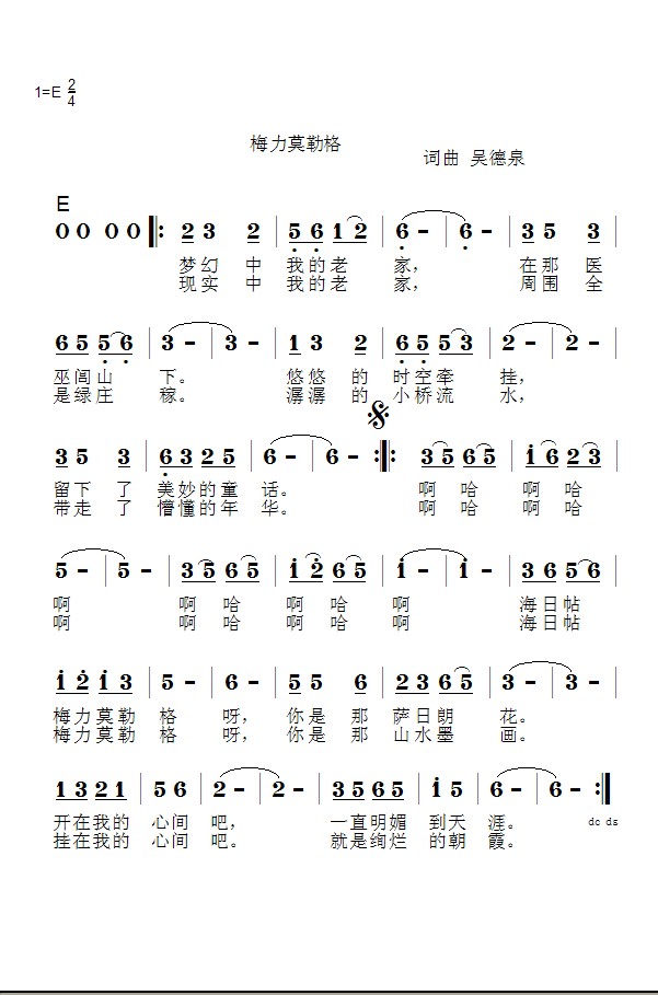 > 梅力莫勒格 词曲吴德泉旋律小小样