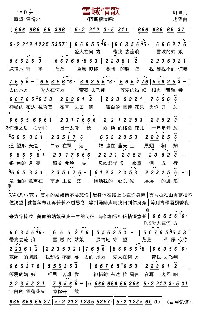 - [歌谱] 唱给雪域的情歌 仁钦卓玛