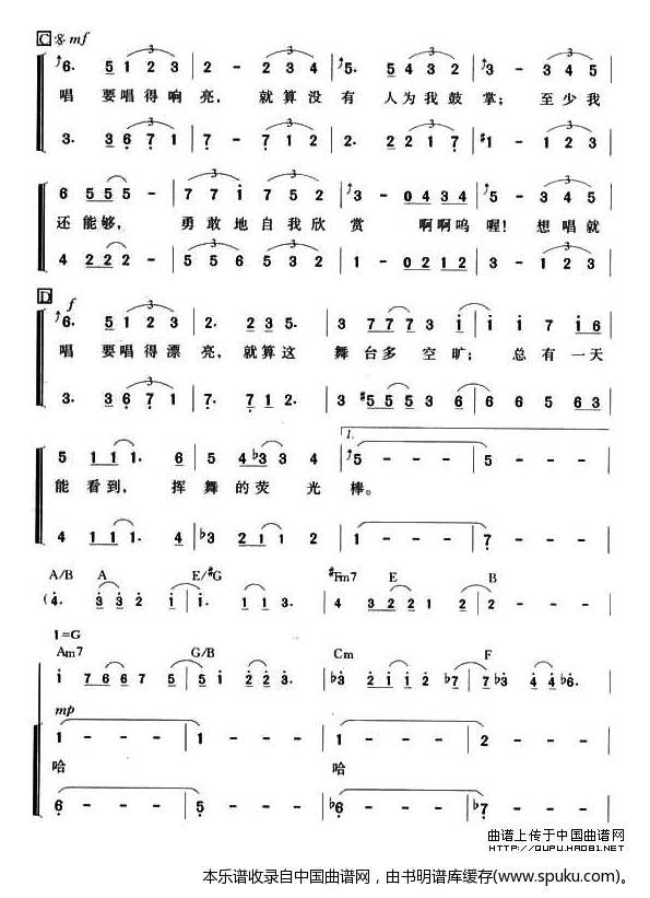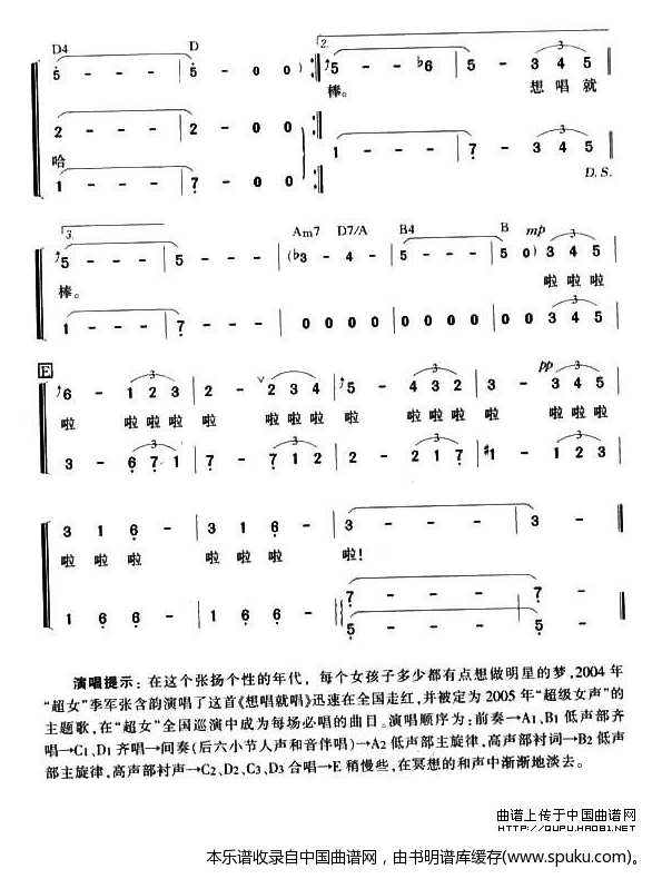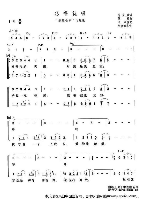 > 想唱就唱 超级女声 主题歌 合唱谱