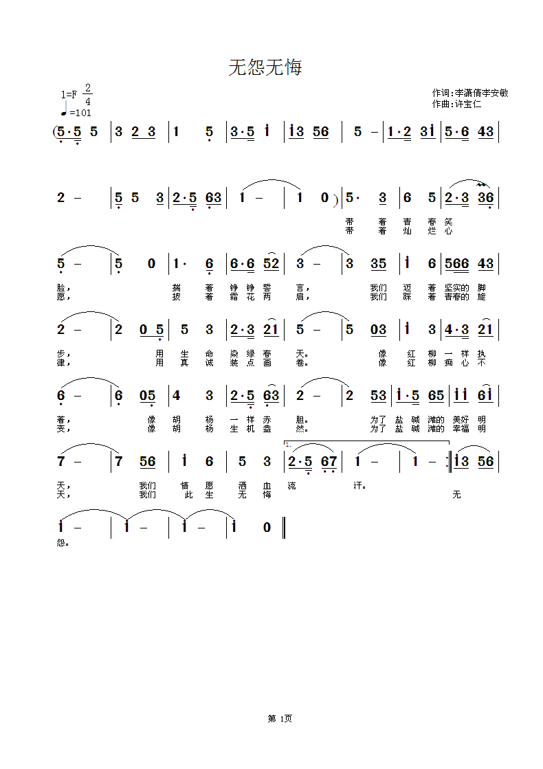 - [歌谱] 无怨无悔