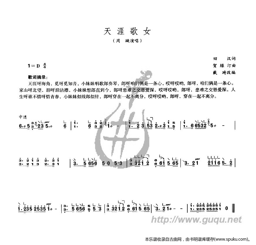 - [歌谱,古筝谱] 天涯歌女