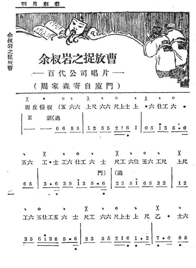 > 听他言吓得我心惊胆怕 老唱片 余叔岩之 捉放曹 工尺谱