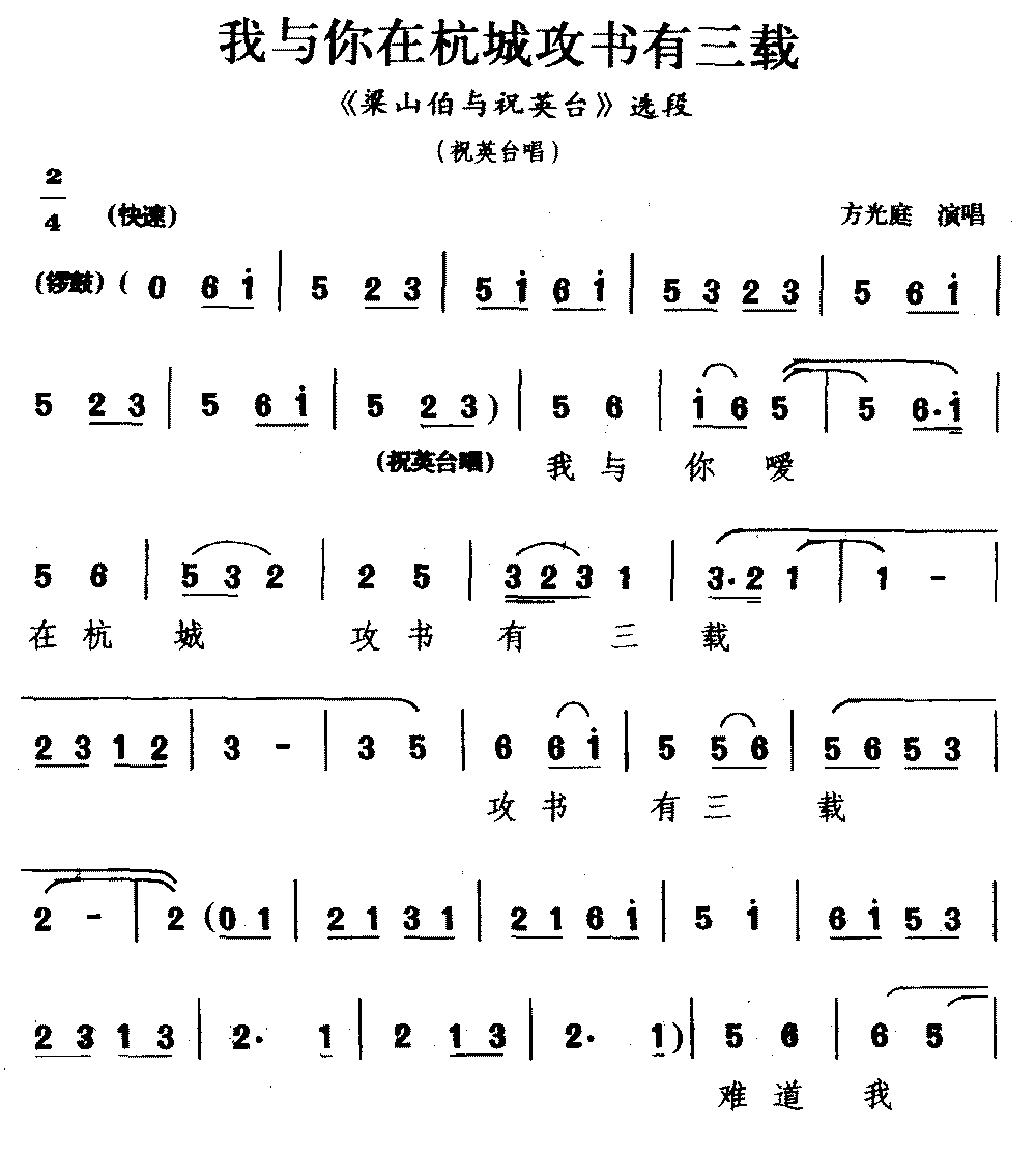 > 睦剧 我与你在杭城攻书有三载 梁山伯与祝英台 选段 祝英台唱