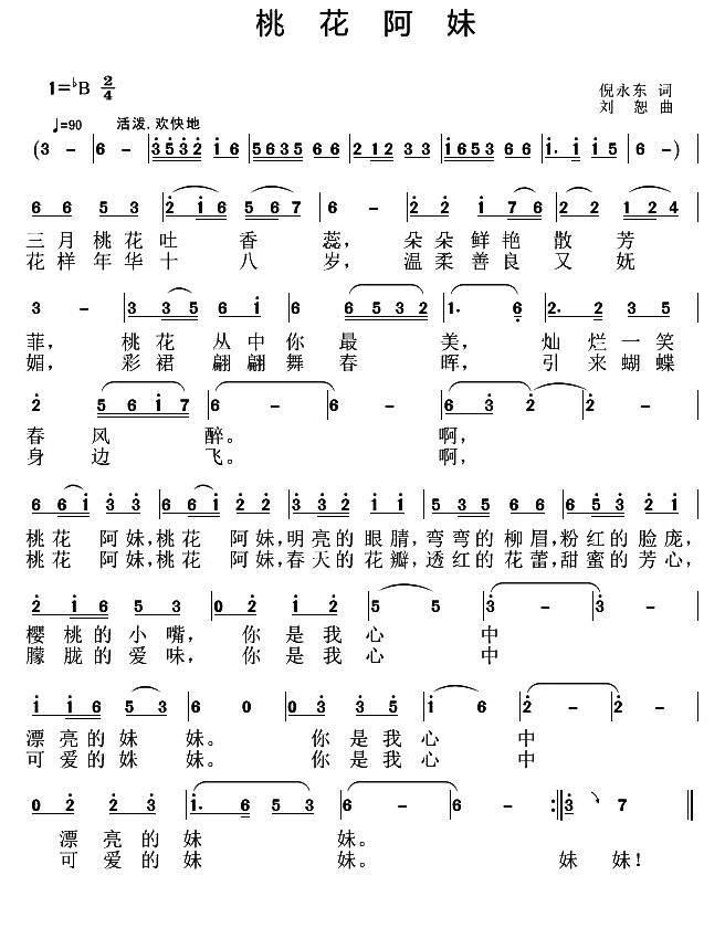- [歌谱] 桃花阿妹