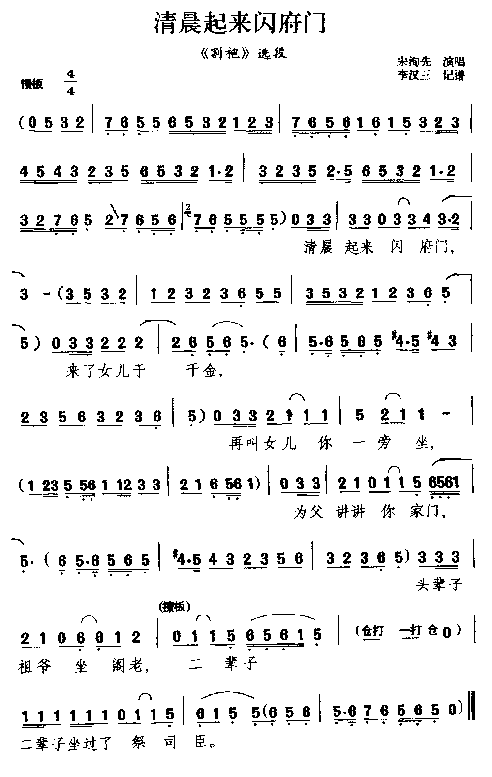 - [歌谱] 老爹爹清晨起前去出首