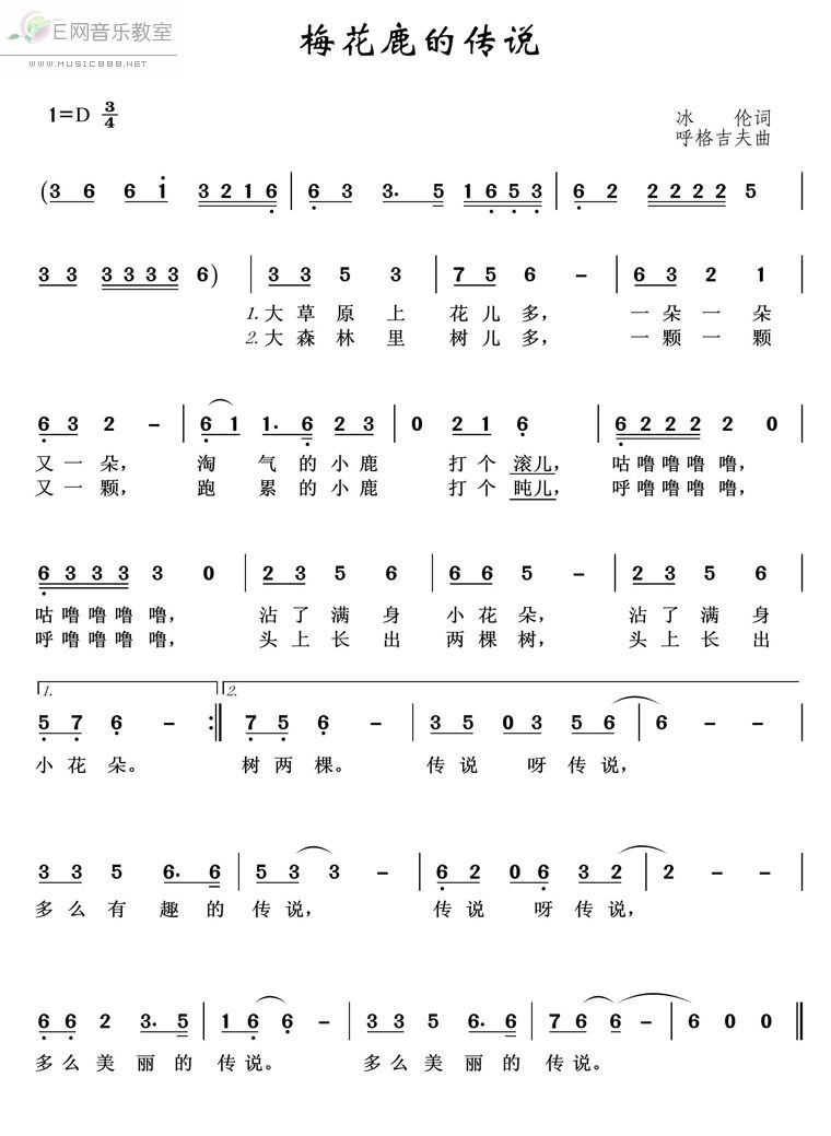 - [歌谱] 小鸟与梅花鹿 童声表演唱