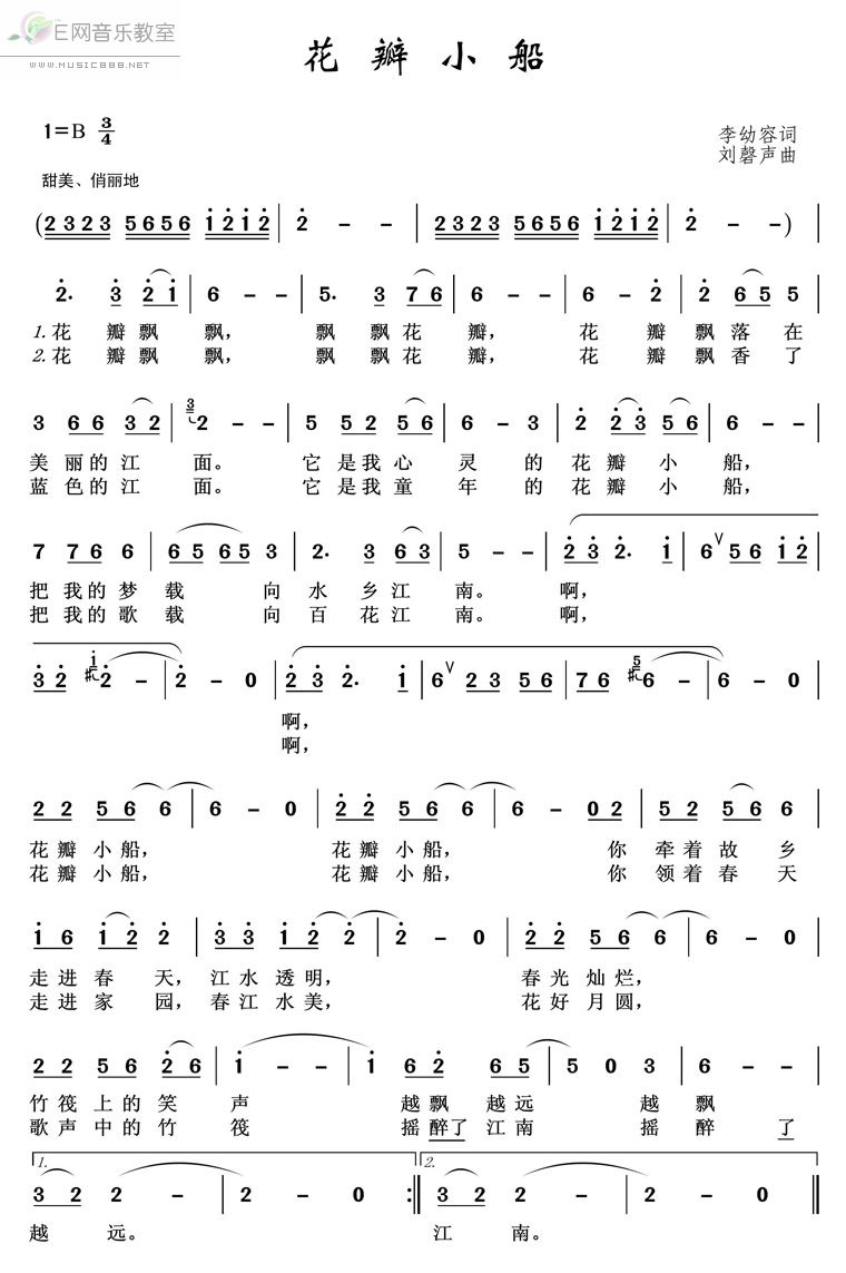 - [歌谱] 花瓣小船