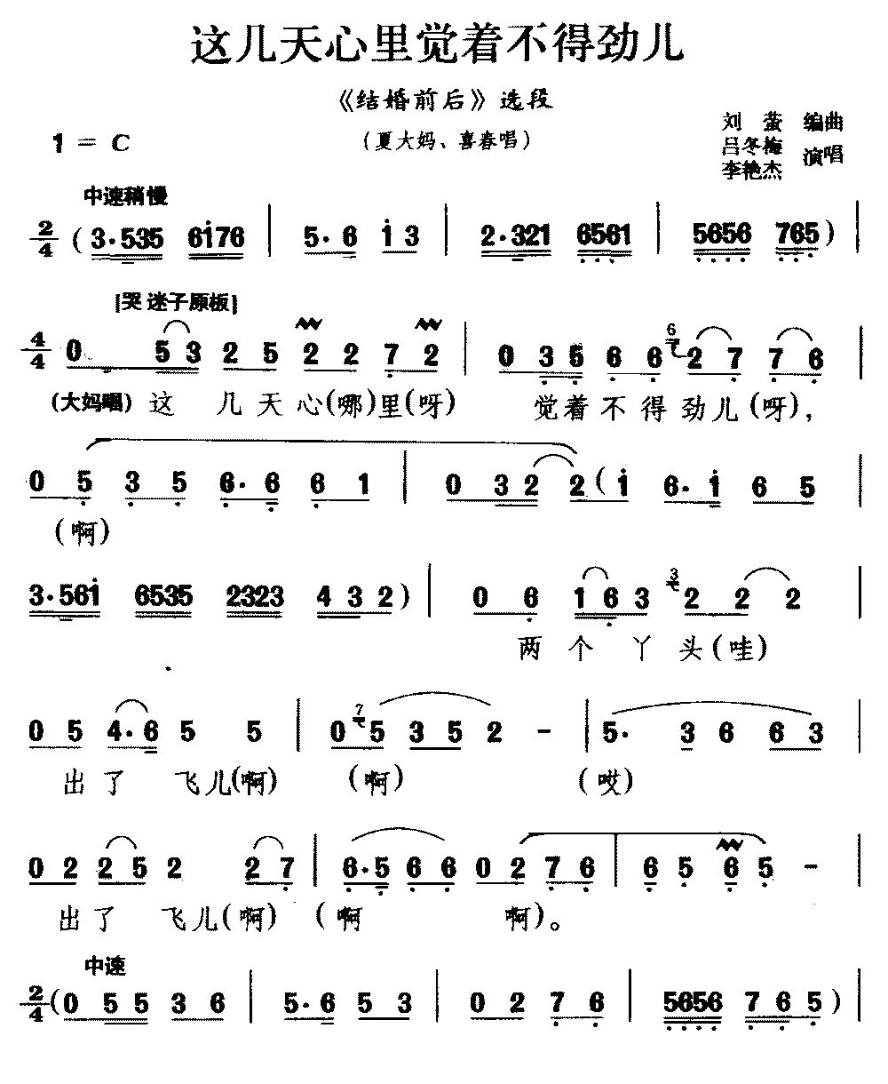 > 龙江剧 这几天心里觉着不得劲儿 结婚前后 选段 吴大妈 喜春唱