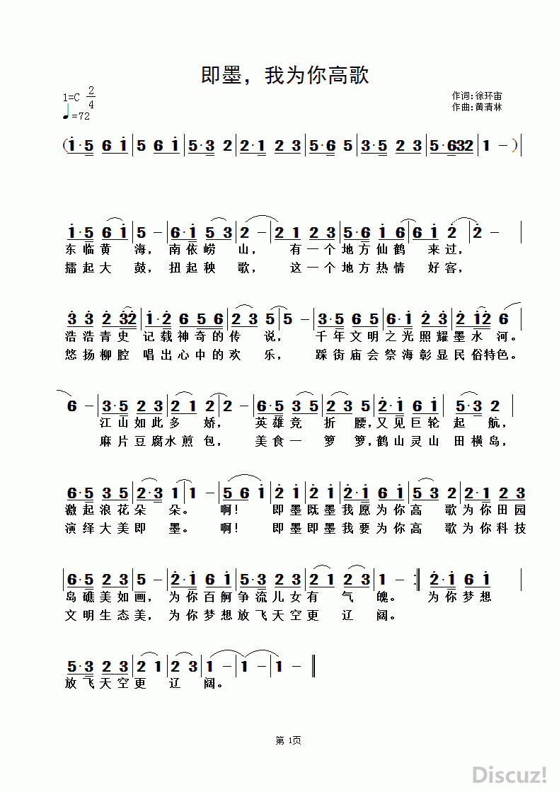> 即墨 我为你高歌 黄清林曲
