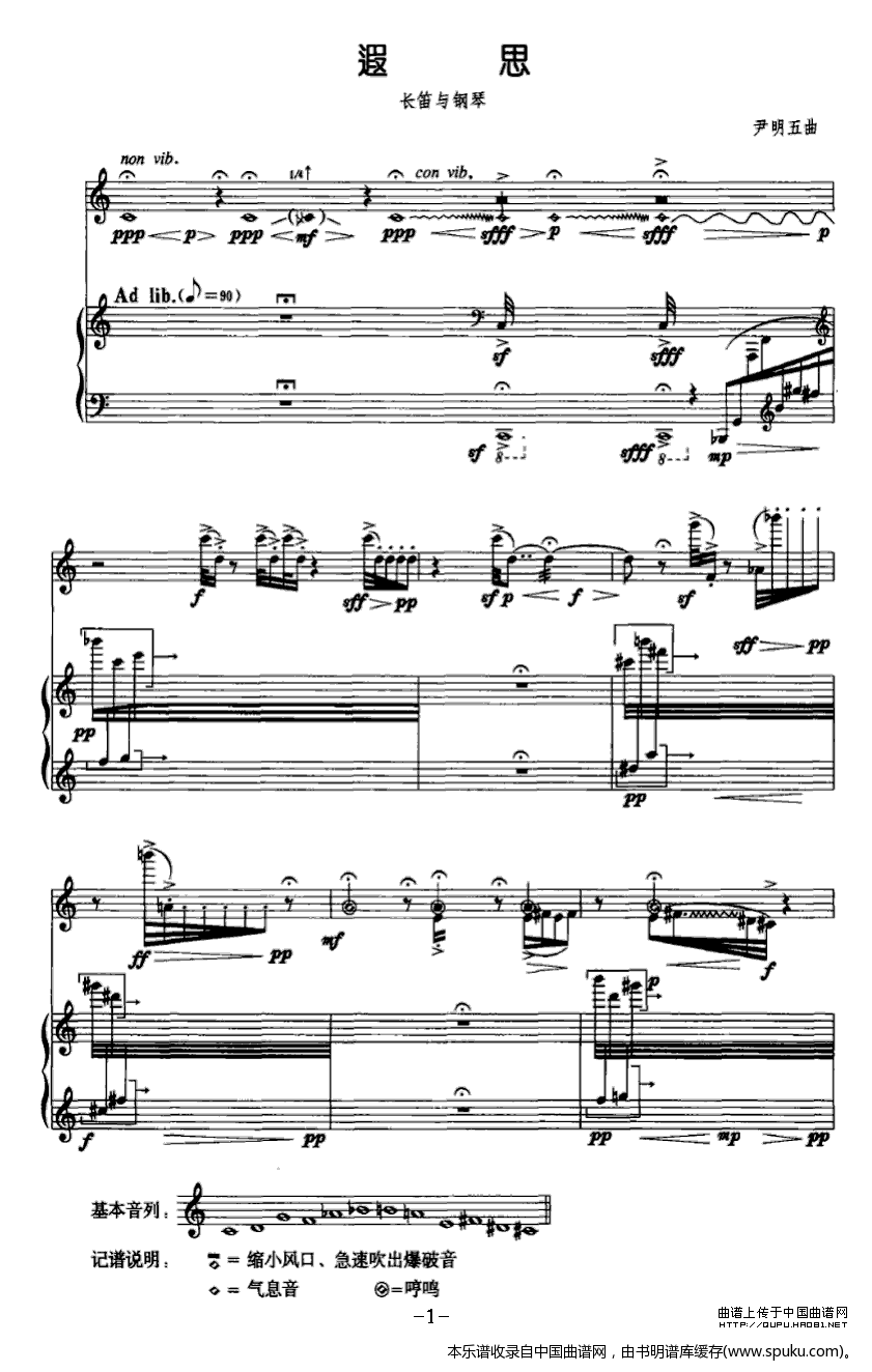 - [笛子谱,钢琴谱,长笛谱] 遐思 长笛 钢琴 P1