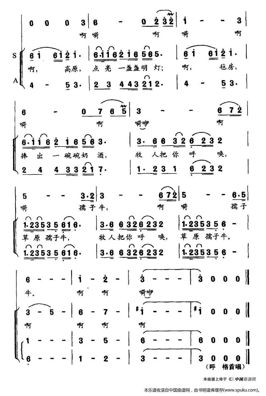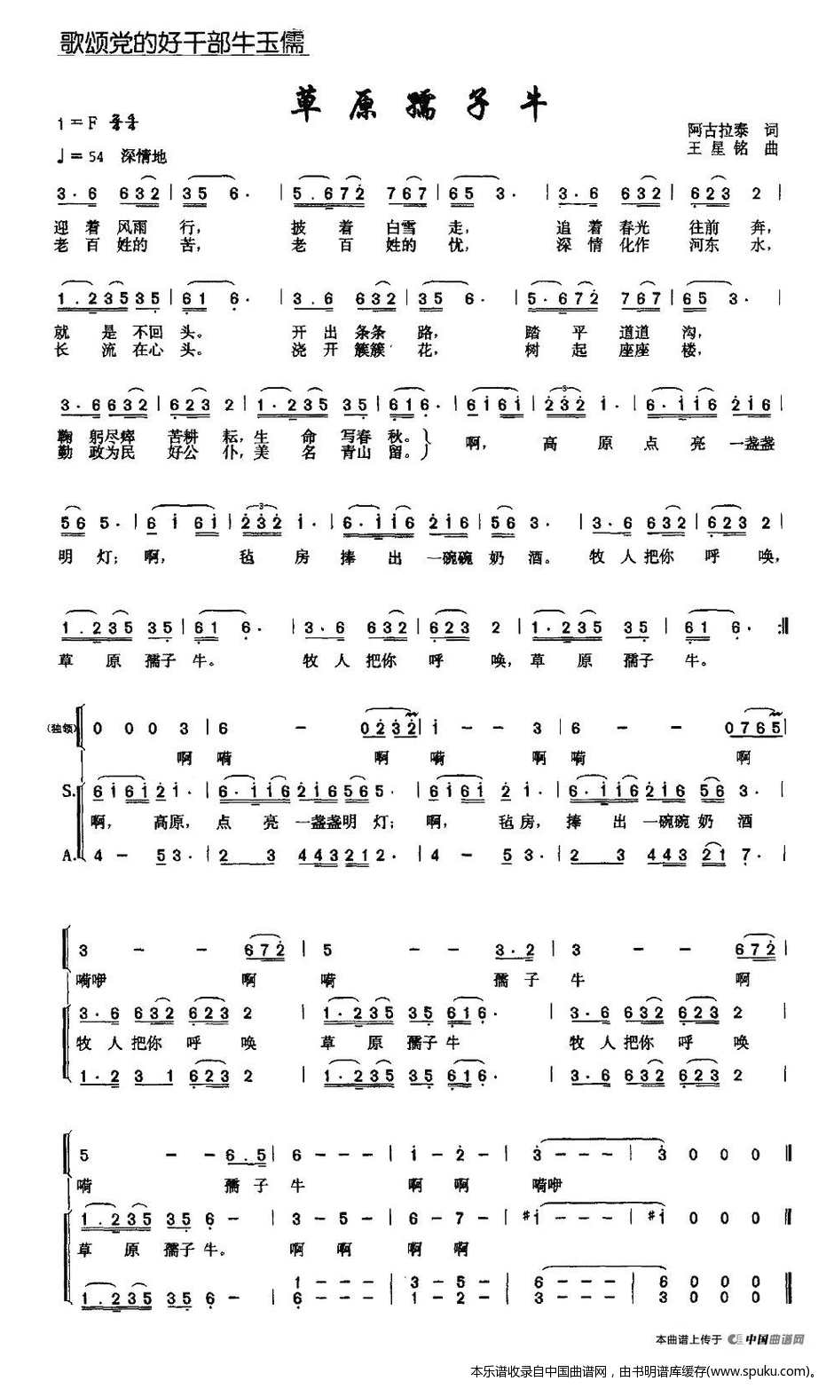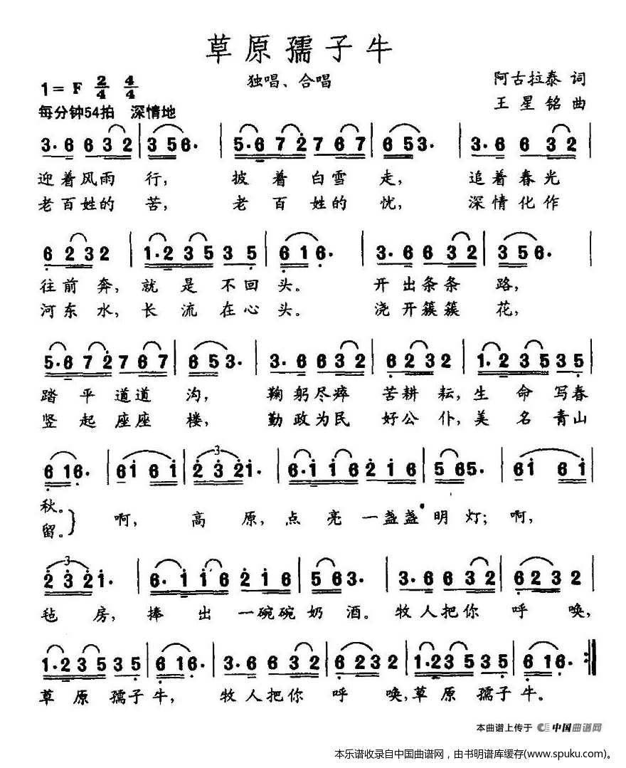 - [歌谱] 草原孺子牛