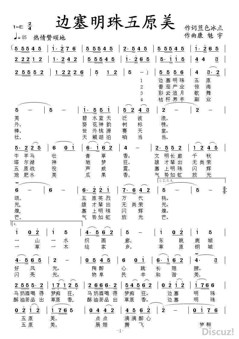 - [歌谱] 一个人坐在空旷的田野 作曲康魁宇
