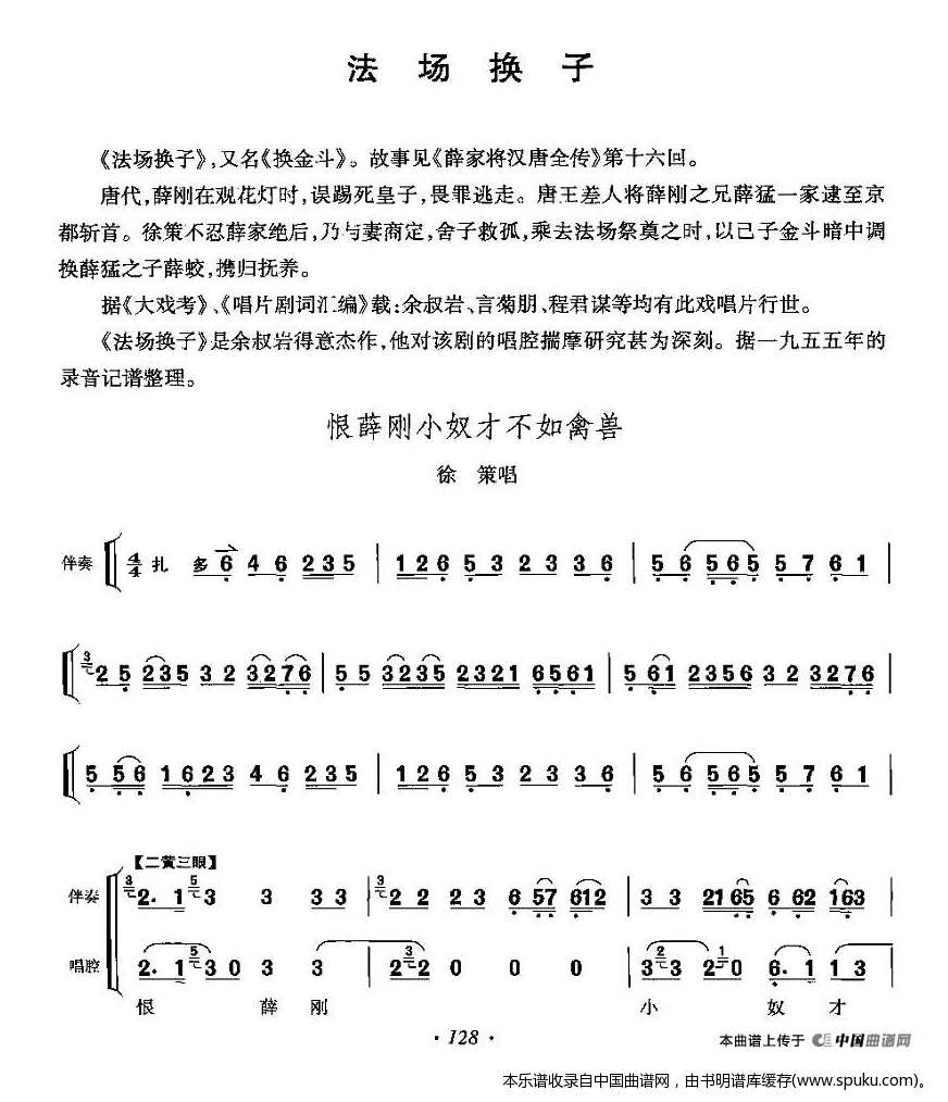 恨薛刚小奴才不如禽兽 法场换子 于魁智唱段 琴谱
