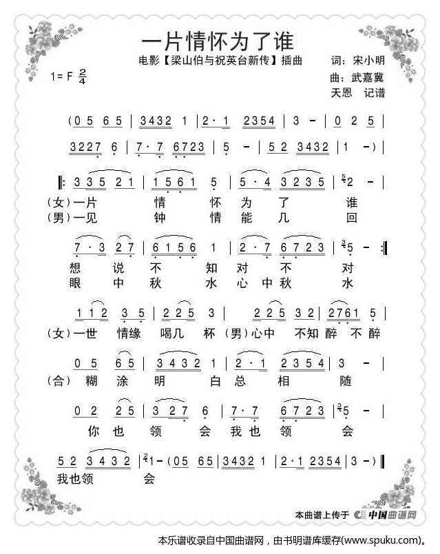 > 一片情怀为了谁 电影 梁祝新传 插曲