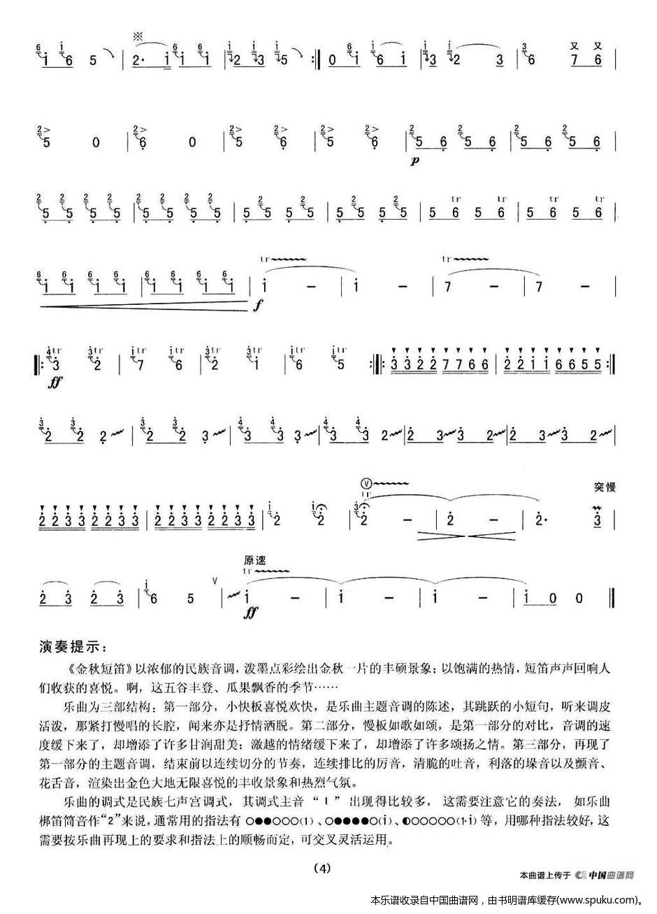 - [笛子谱] 金秋短笛