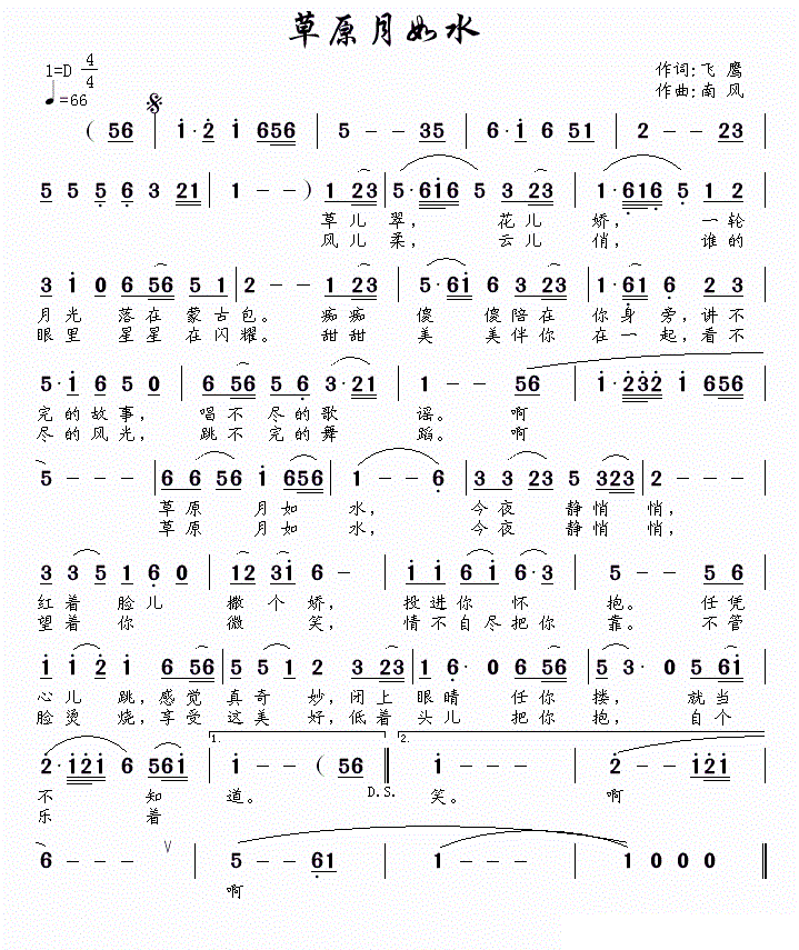 - [歌谱] 草原上的姑娘天生就这样 编 方雪