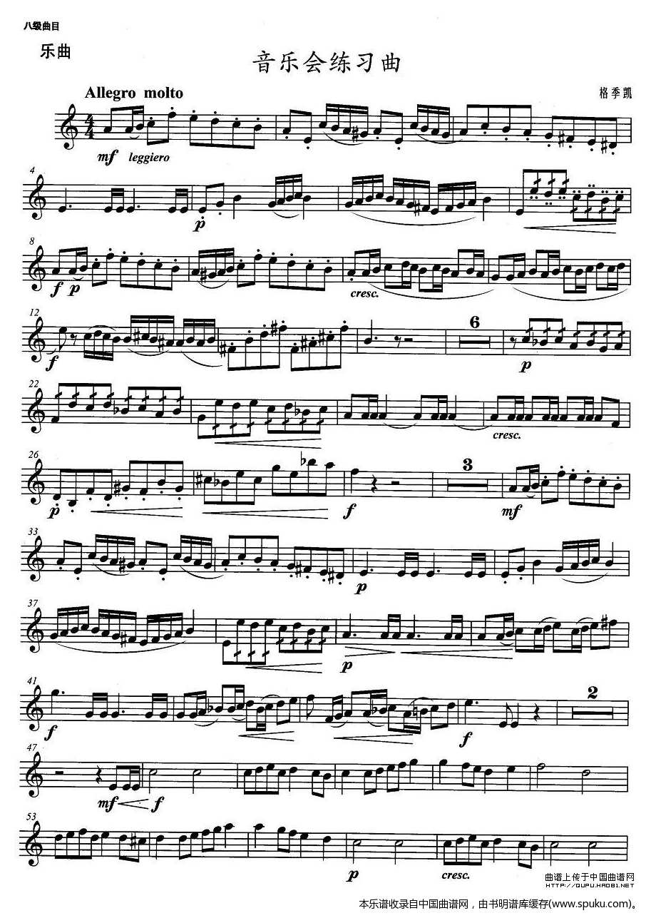 音乐会练习曲 中国二胡考级规定演奏曲 九级