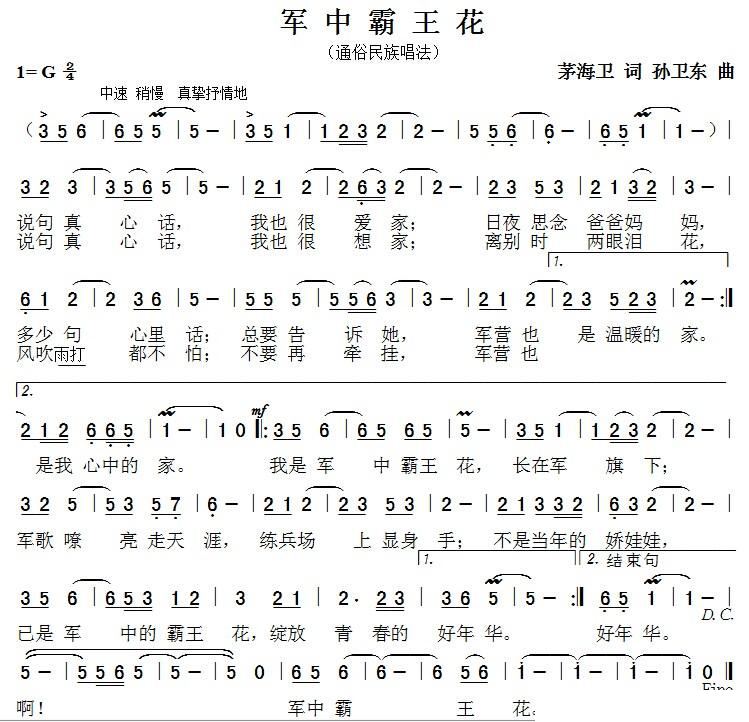 > 军中霸王花 孙卫东曲