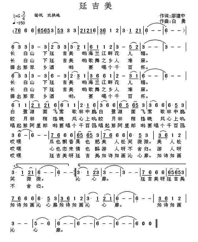 - [歌谱] 延吉美