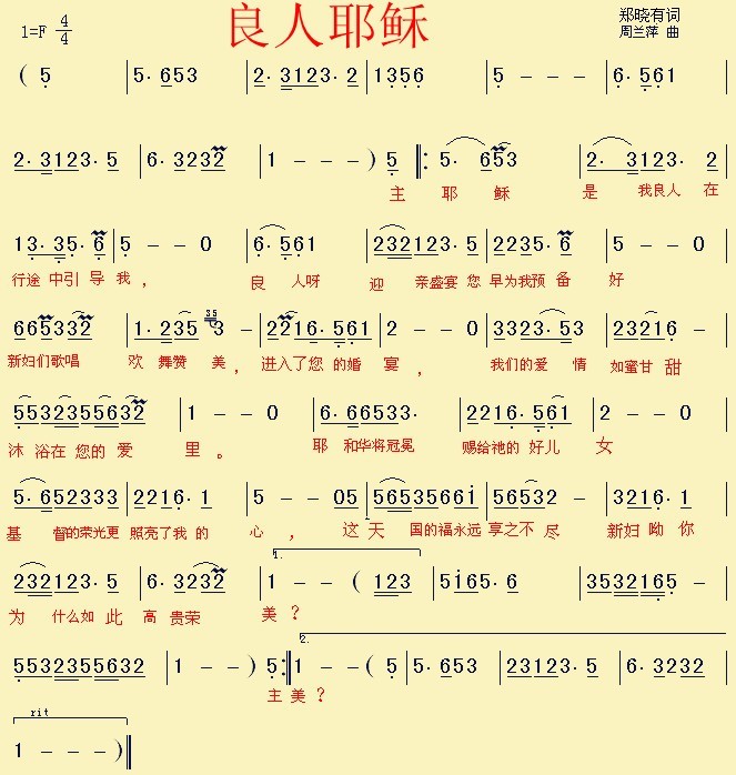 - [歌谱] 良人和我