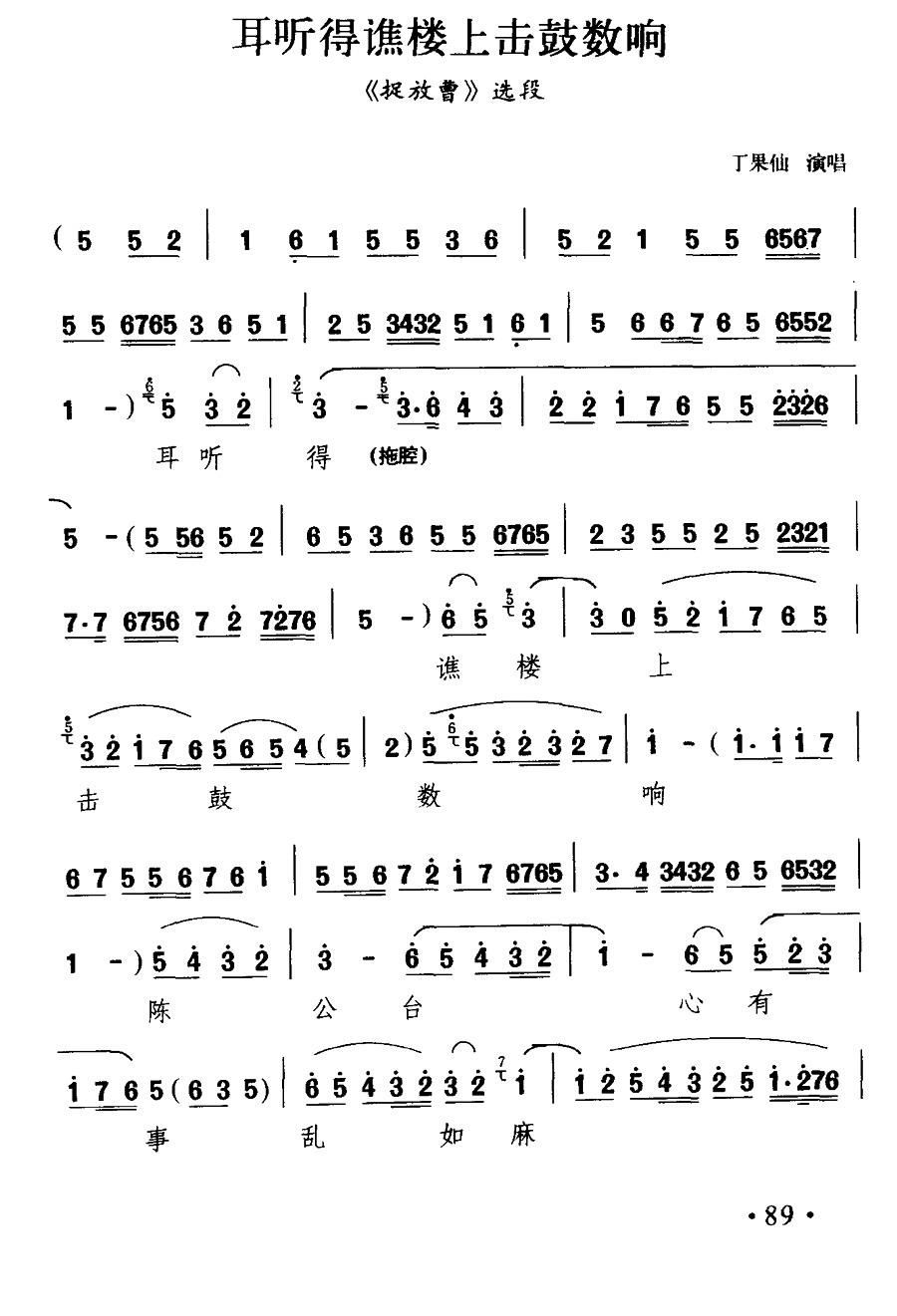 听他言吓得我心惊胆怕 捉放曹 选段 琴谱 京剧戏谱