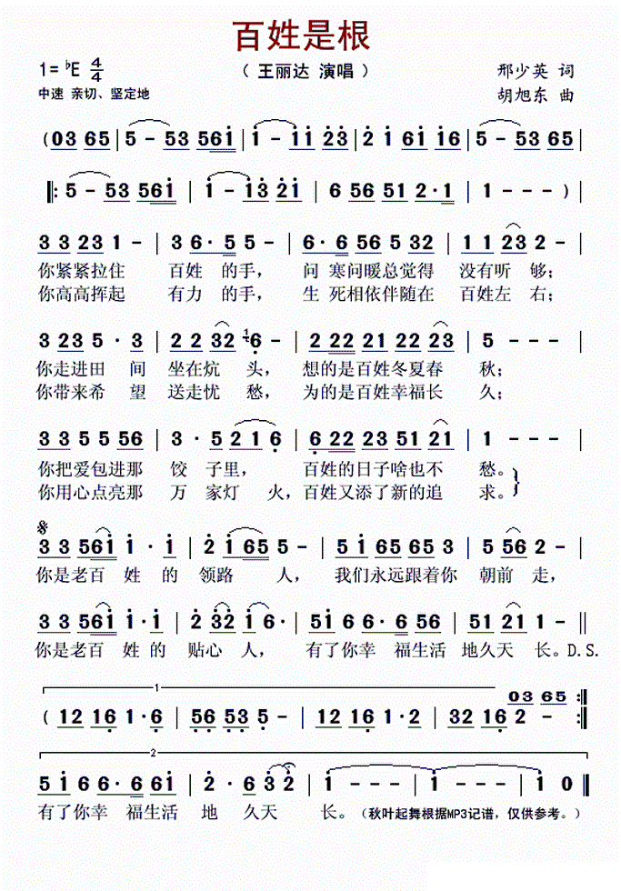 - [歌谱] 以百姓心为心 王丽达