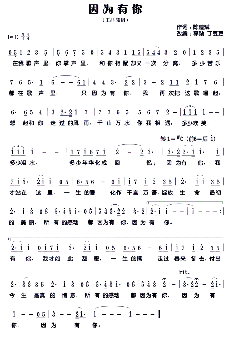 - [歌谱] 因为有你 王力宏