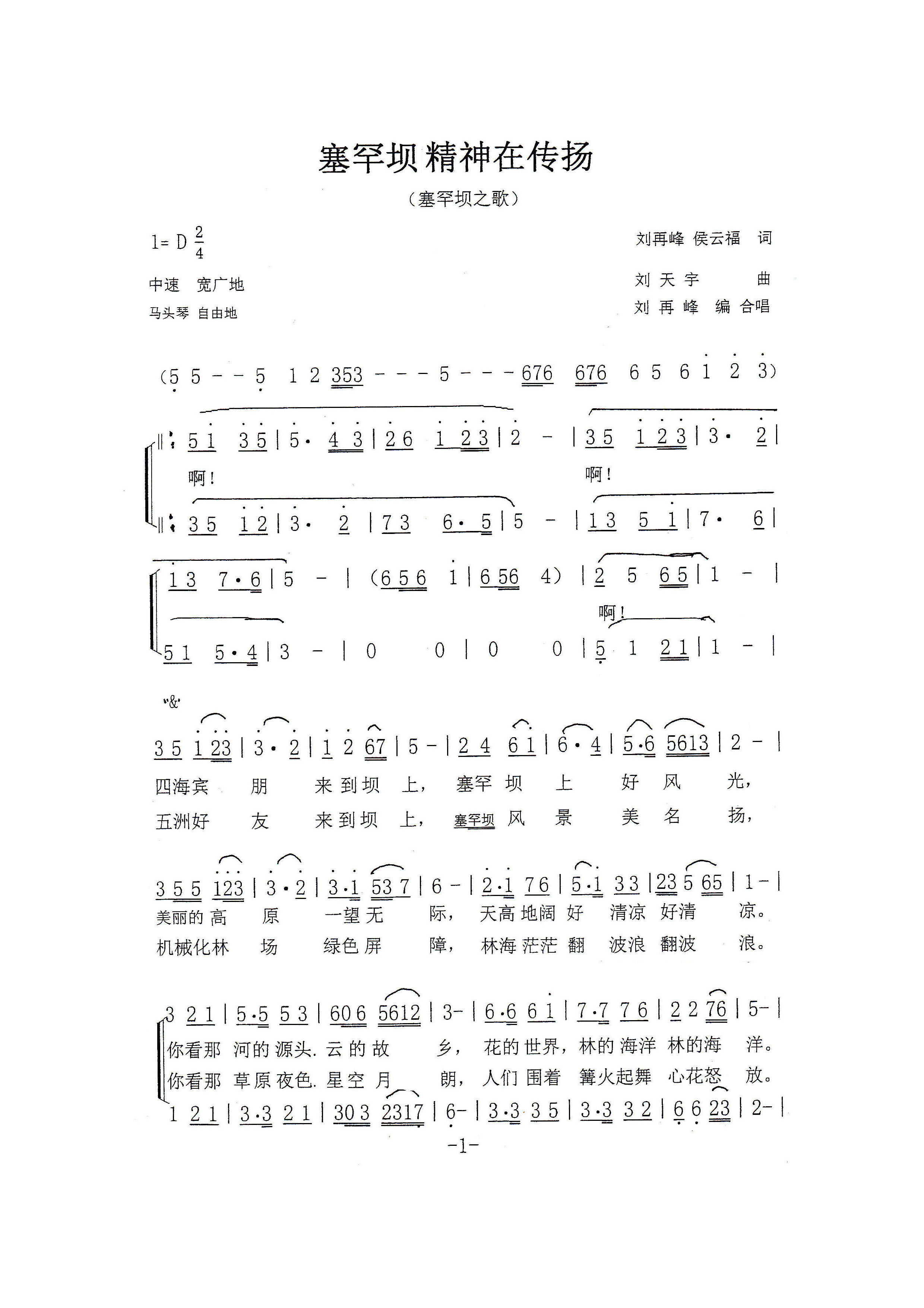 - [歌谱] 塞罕坝之歌