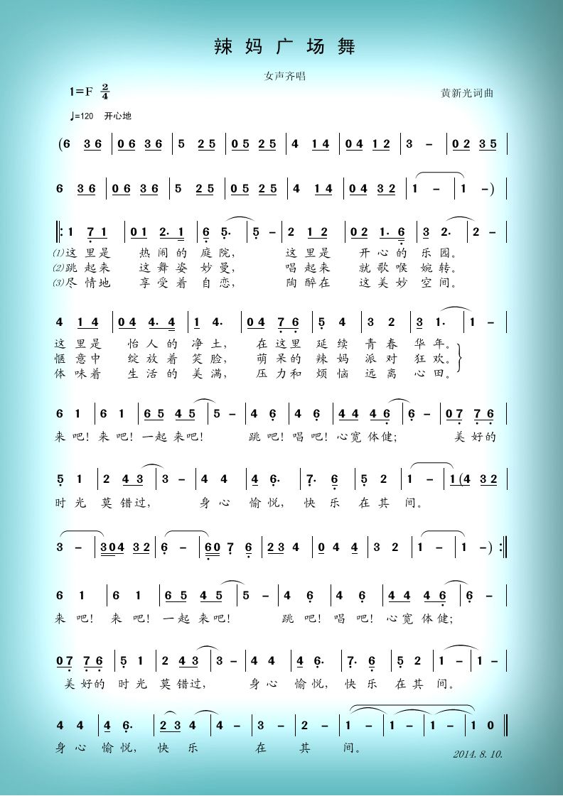 - [歌谱] 今夜春暖花开 广场舞 彩谱