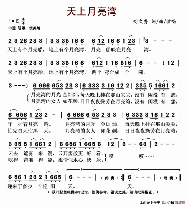 - [歌谱] 月亮湾