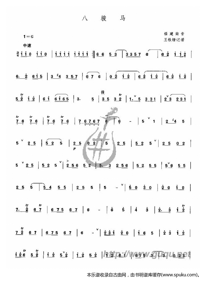 八骏马 福建南音 谱