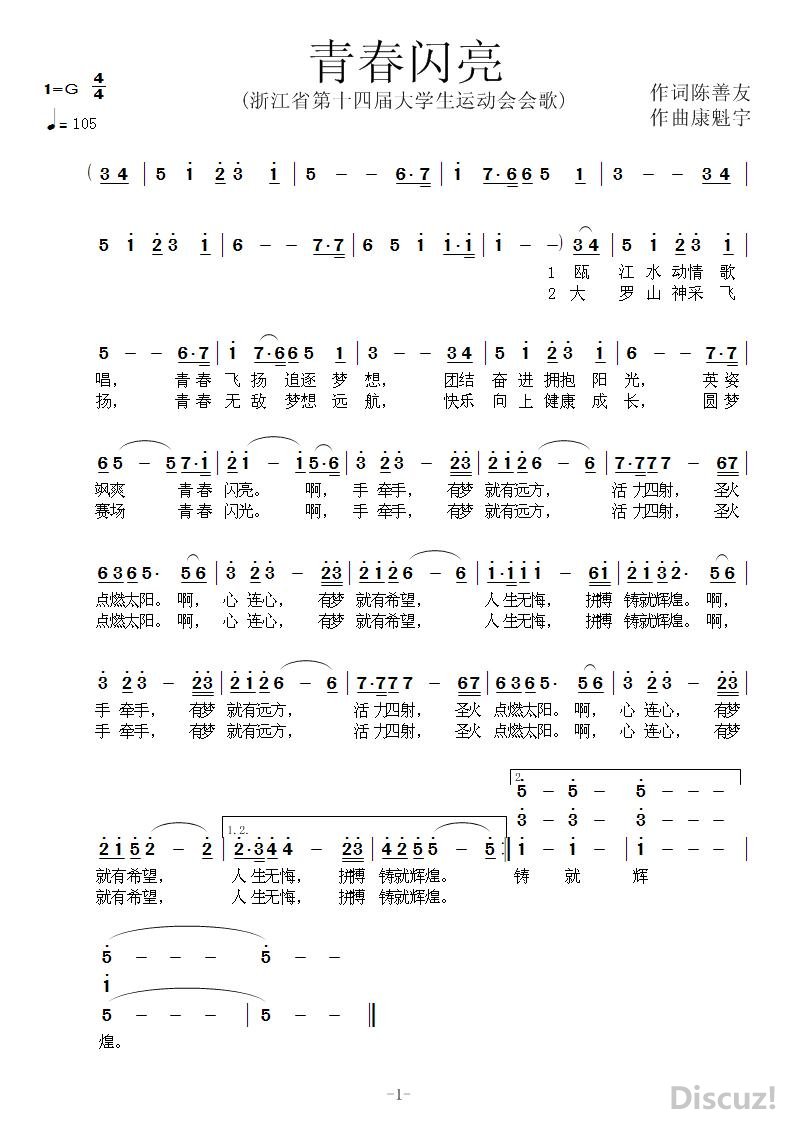 - [歌谱] 青春闪亮