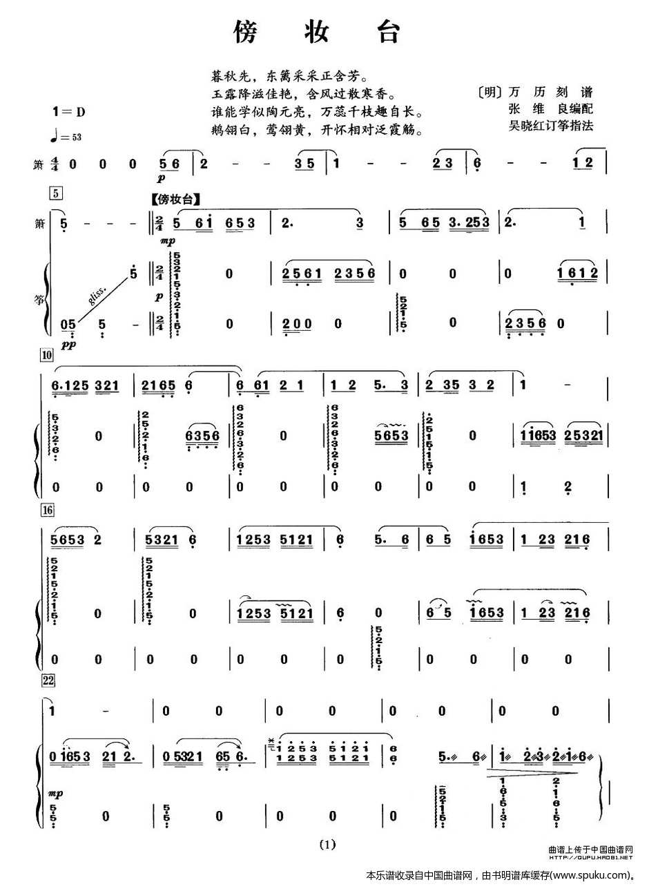 - [笛子谱,歌谱,古筝谱] 傍妆台 萧筝
