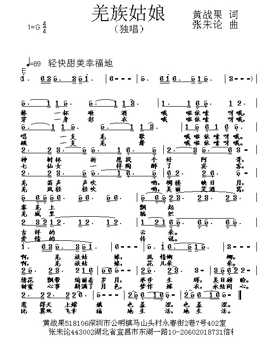- [歌谱] 唱就唱吧 雷佳 羌族民歌