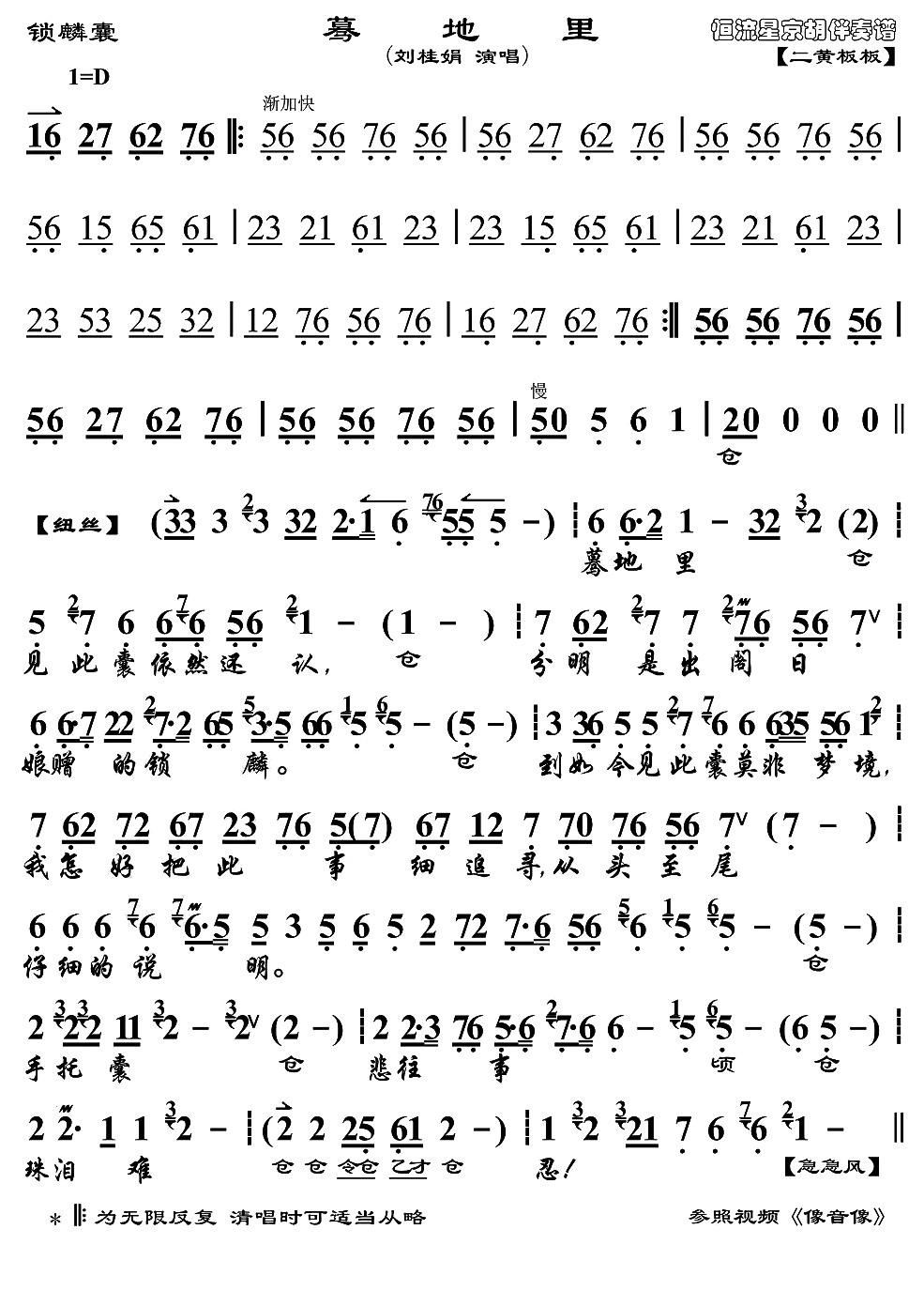 一霎时把七情俱已昧尽 锁麟囊 选段 京胡伴奏谱 京剧唱谱