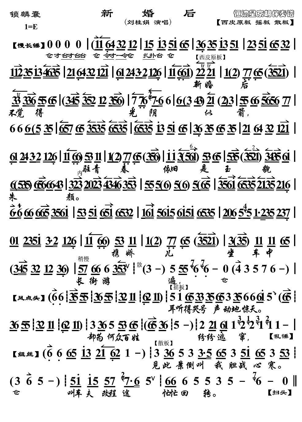 > 新婚后 锁麟囊 选段 京胡伴奏谱