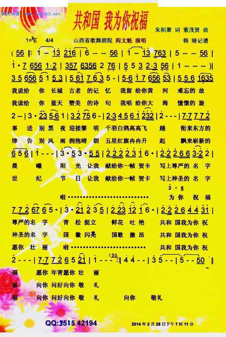 共和国我为你祝福 彩谱
