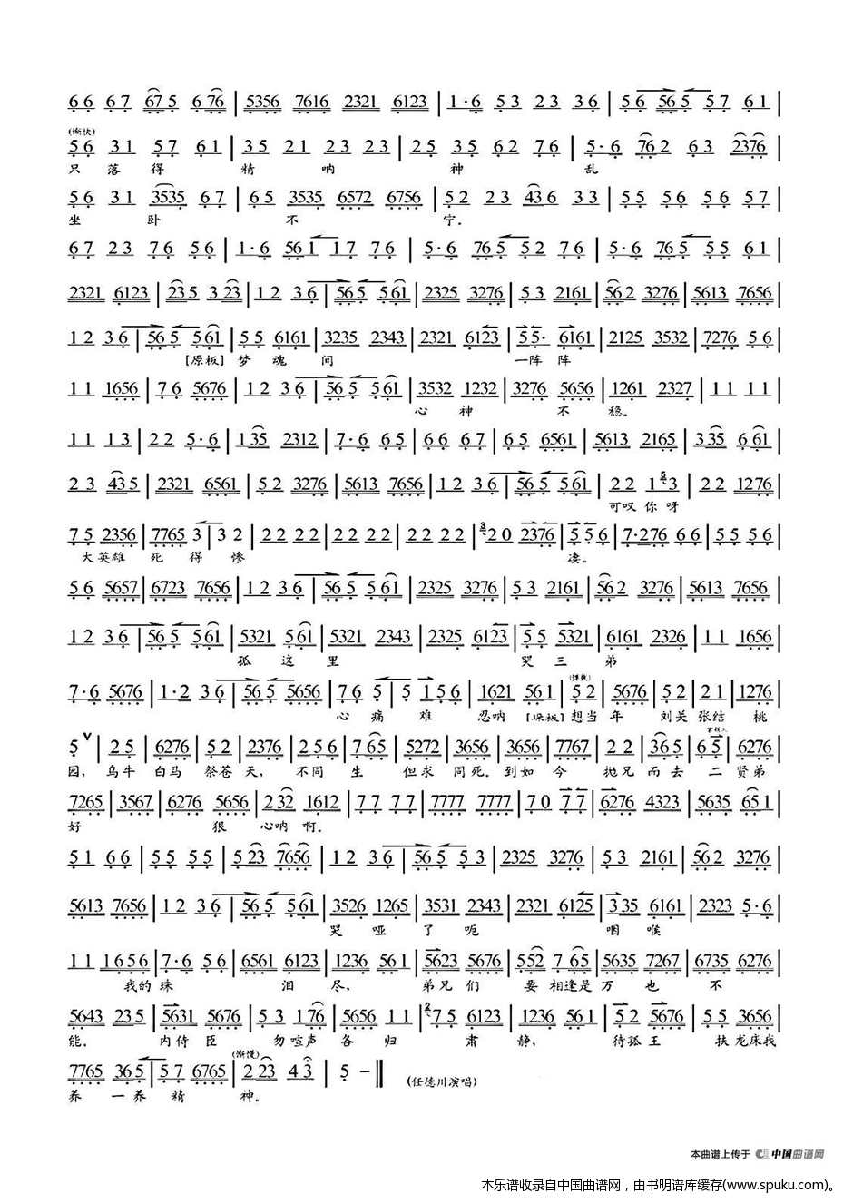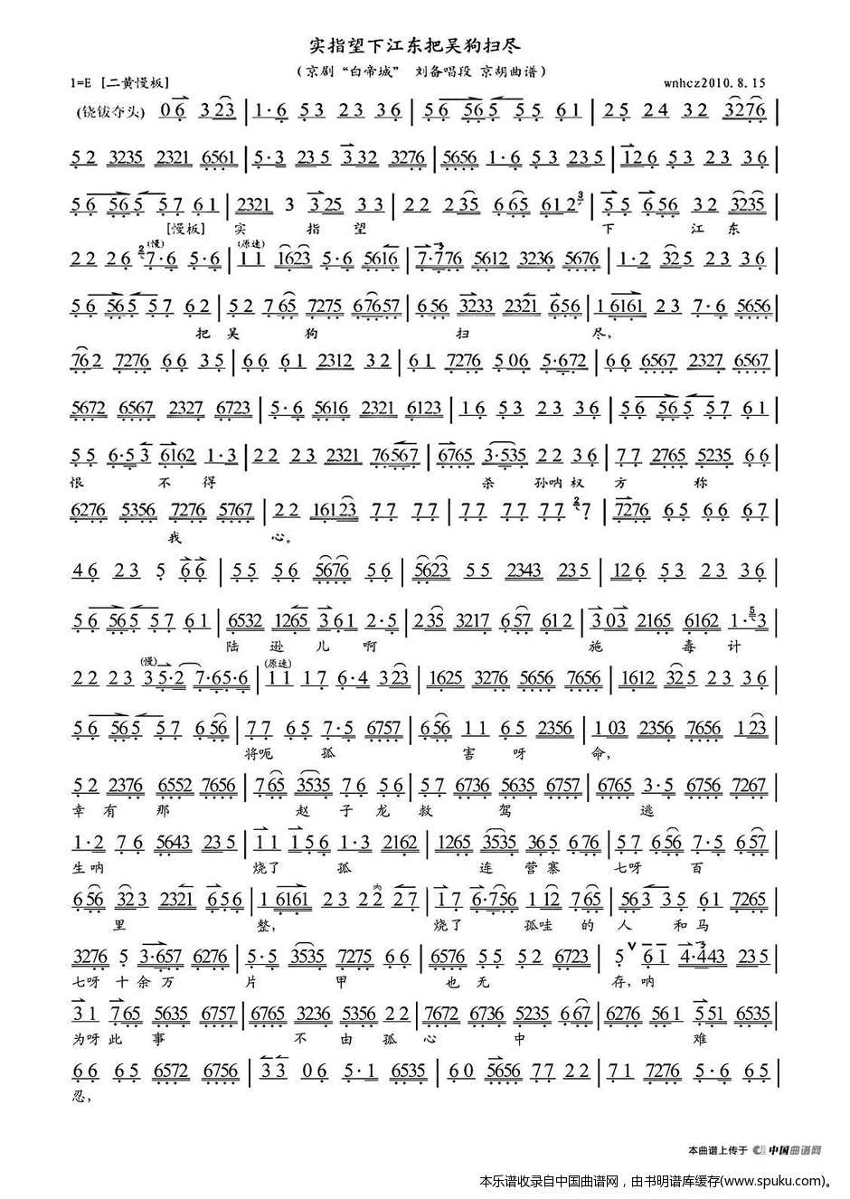 实指望下江东把吴狗扫尽 白帝城 选段 琴谱 京剧戏谱