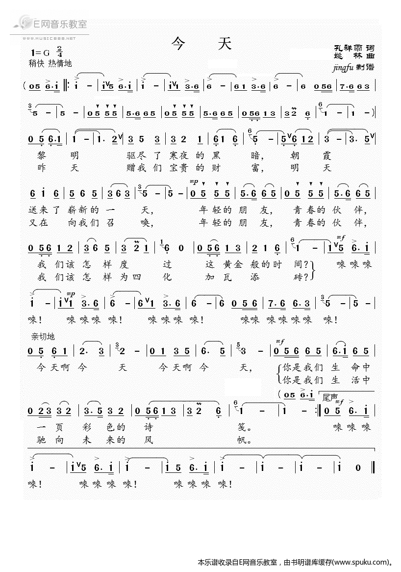 - [歌谱] 今天 蒋大为版