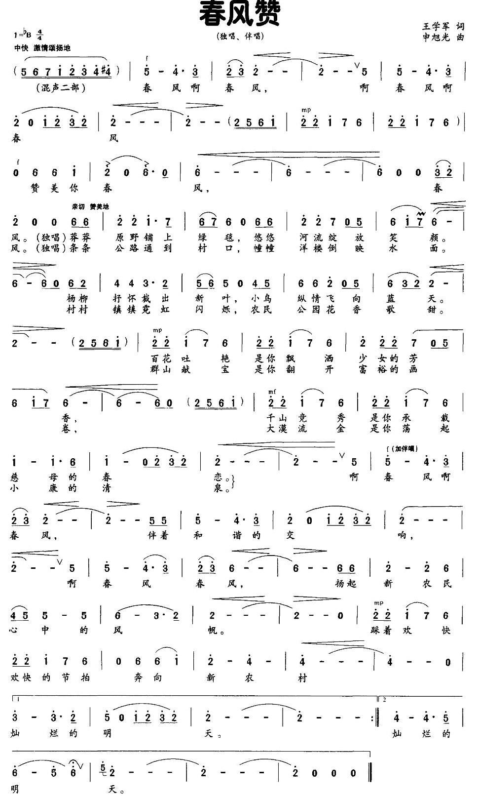 - [歌谱] 春风赞