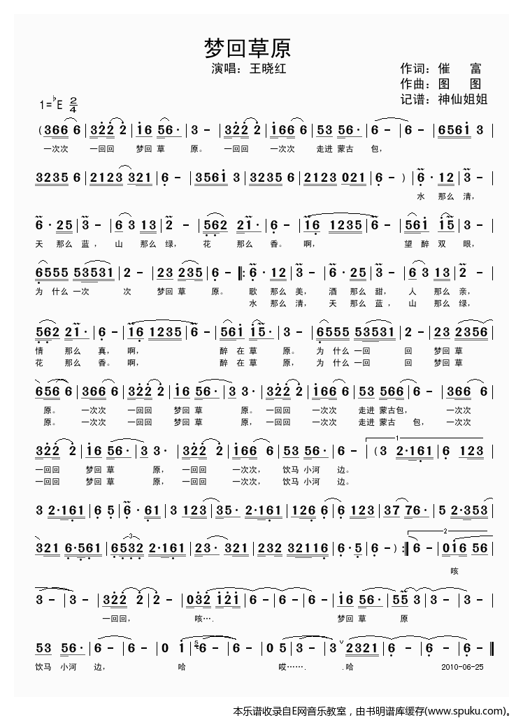 - [歌谱] 梦回草原 仁钦敖日布词曲