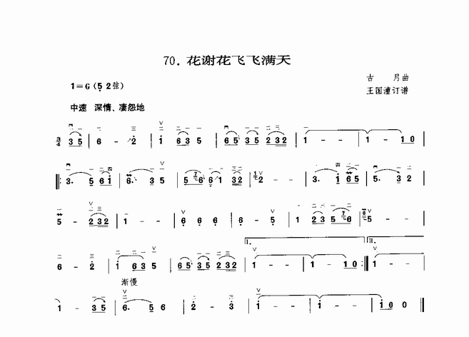 花谢花飞花满天 黛玉葬花 黛玉唱腔 琴谱